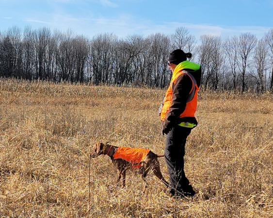 Drama definitely lives up to her name. Every bit of energy is put into living her best life. She has a high drive that can go all day. When not napping on the couch. She is ready for anything. She is a hard running dog. With natural sliding stop points. She honors and backs naturally if dogs she's running with are faster. She's a bulldozer in the woods and enjoys hunting anything with fur. And very classy and stylish out in the field. Absolutely nothing will slow this girl down until you say "bed time" That is when she turns off "go mode". She is a hard snuggler. And absolutely adores small children and enjoys the company of small dogs. She also helps with bird chores daily and knows the pigeons are our pets. She has her own kitten that She's very gentle with. She's very smart and aware with respect to livestock, and knows the difference between a pet and a wild animal of the same species. She's crazy smart and always by my side, ready for the next adventure.